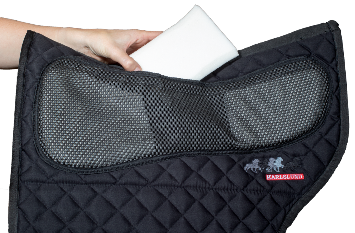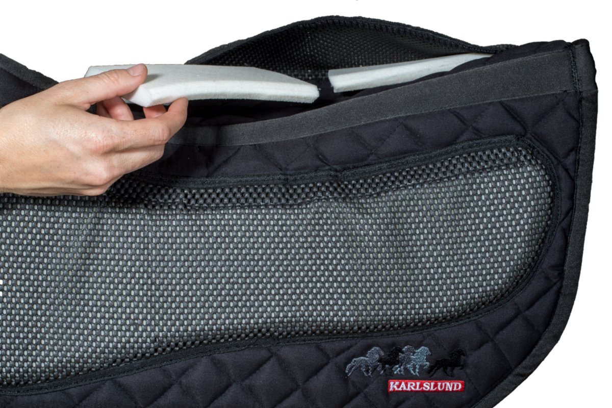 Indlæggene kan tages ud så du får støtte for, bag eller midt under sadlen. Med anti-skrid funktion på både over og underside. Pasformen giver god plads til mankekammen.